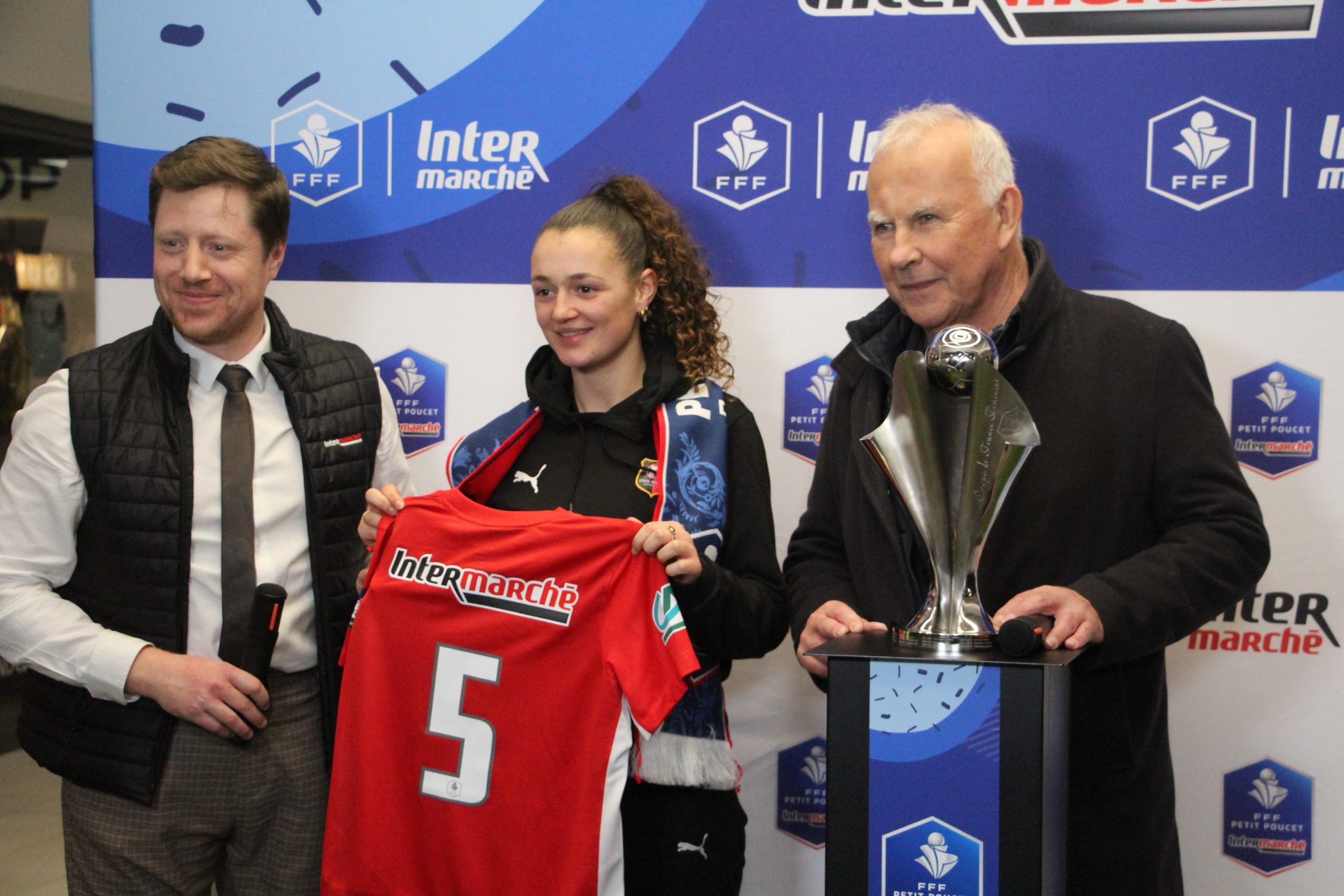 L’événement a également permis aux clients et passionnés de football de partager la ferveur de la Coupe de France Féminine. L’exposition du trophée officiel a attiré des curieux, venus se prendre en photo grâce à une borne installée pour l’occasion. Des écharpes et drapeaux Petit Poucet Intermarché ont aussi été distribués, symboles forts du soutien local autour de l’équipe.