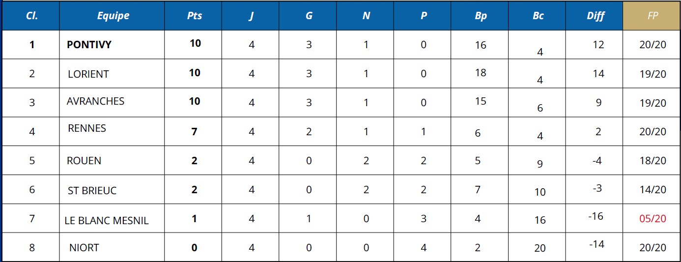 Avec un bilan remarquable de 3 victoires et 1 match nul lors des quatre journées qualificatives, les Pontivyens ont dominé leur groupe et validé leur billet pour la suite de la compétition.