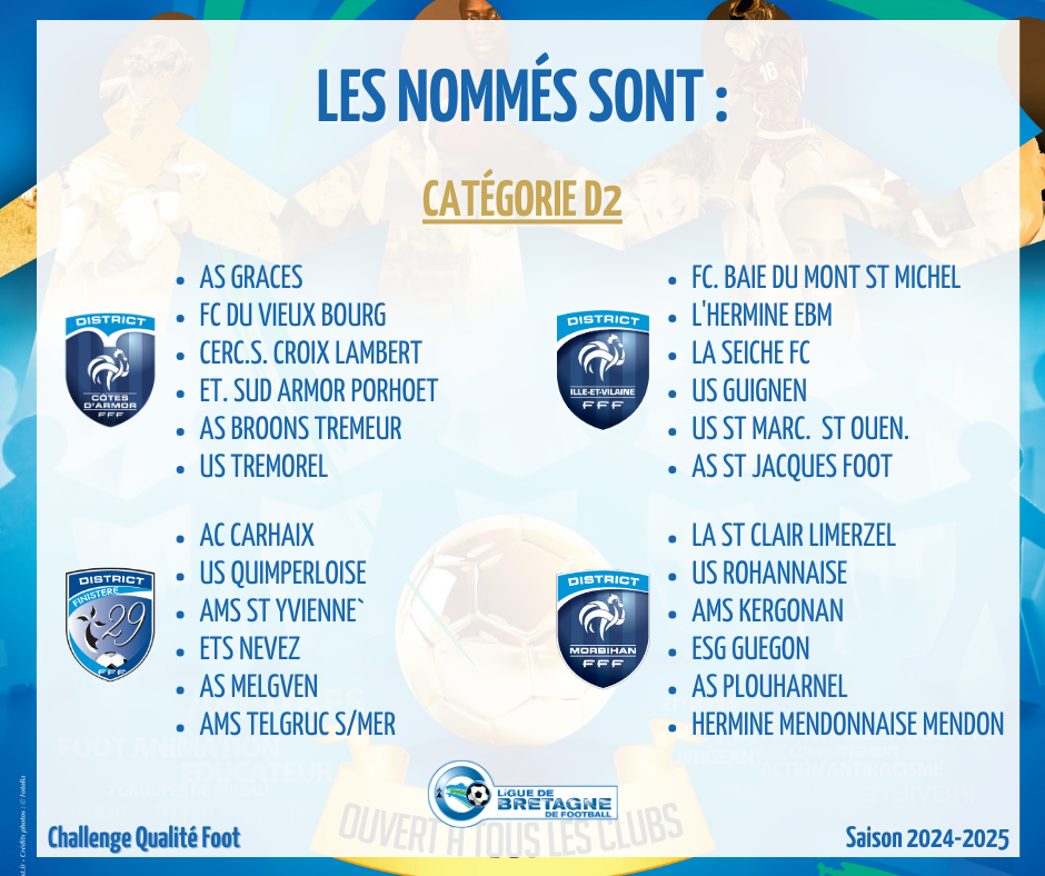 La cérémonie de remise des récompenses du Challenge Qualité Foot, valorisant les clubs pour leur structuration et développement sur la saison 2024-2025, se tiendra ce samedi 24 janvier 2026 à Rennes, en amont de la rencontre de Ligue 1 STADE RENNAIS FC – FC LORIENT.