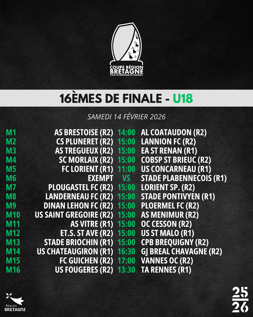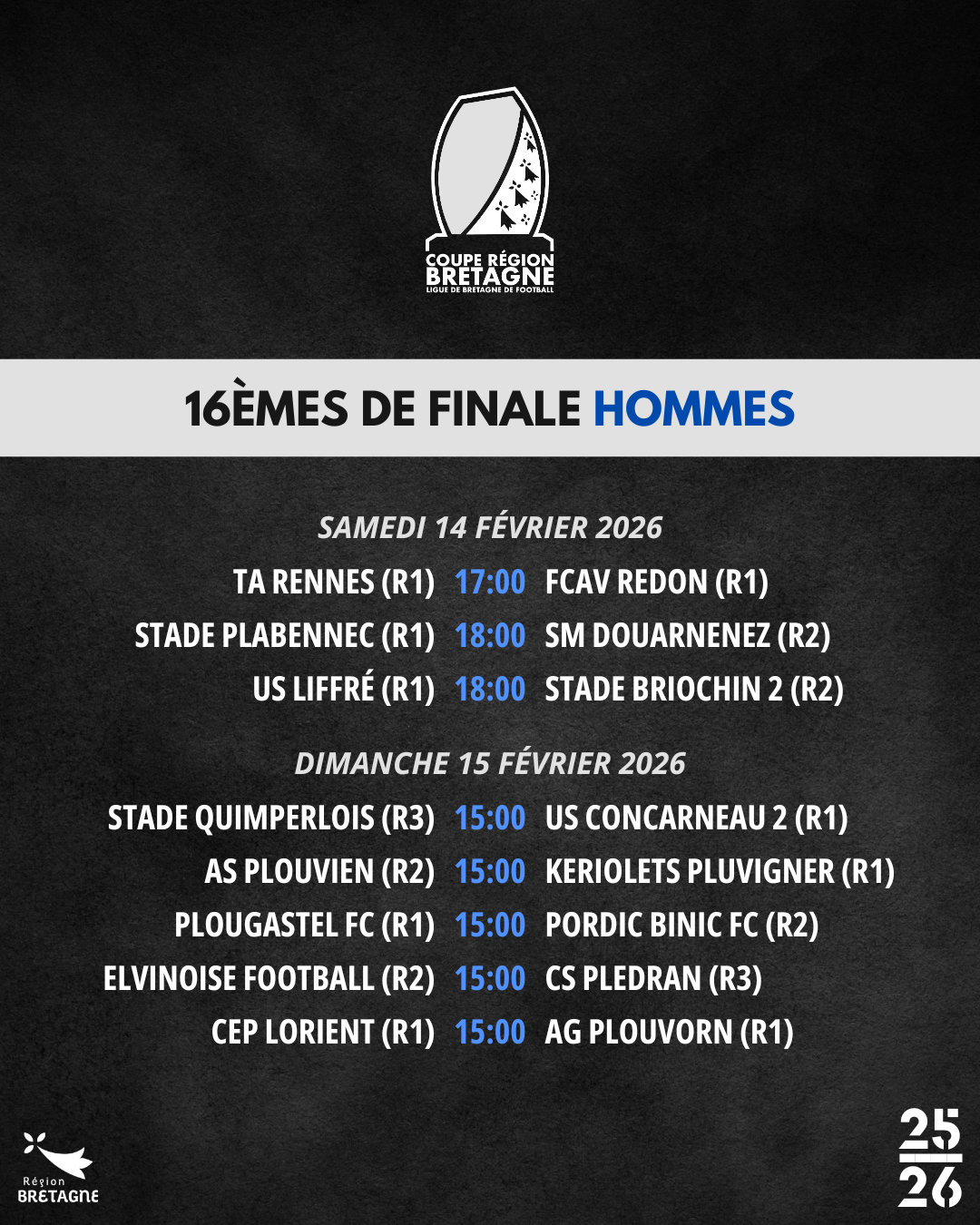 Les Tirages au sort des 16èmes de finale de la Coupe Région Bretagne Hommes et des 8èmes de finale de la ...