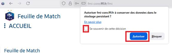 Sur la nouvelle version Il est nécessaire d’autoriser l’option « autorisation du stockage persistant » afin d’assurer le bon fonctionnement de l’application FMI et d’éviter toute perte de données en cours de saisie !