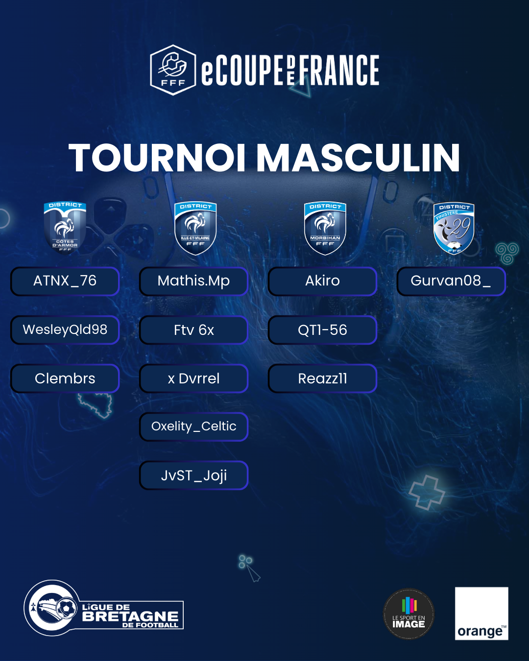 La grande finale régionale de l’E‑Coupe de France se tiendra le samedi 7 mars, au siège de la Ligue de Bretagne de Football à Montgermont.