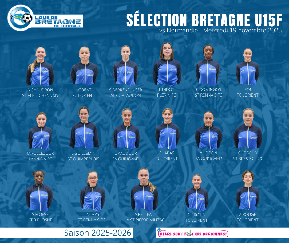 Mercredi 19 novembre 2025, la Sélection Bretonne U15 Féminine sera en déplacement face à son homologue normande à Avranches à 14h45. Les joueuses retenues…