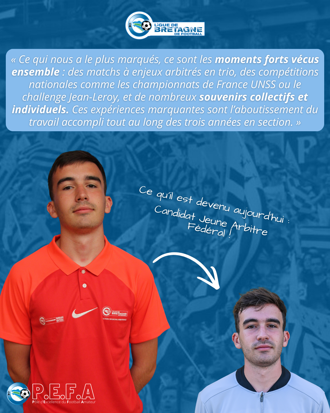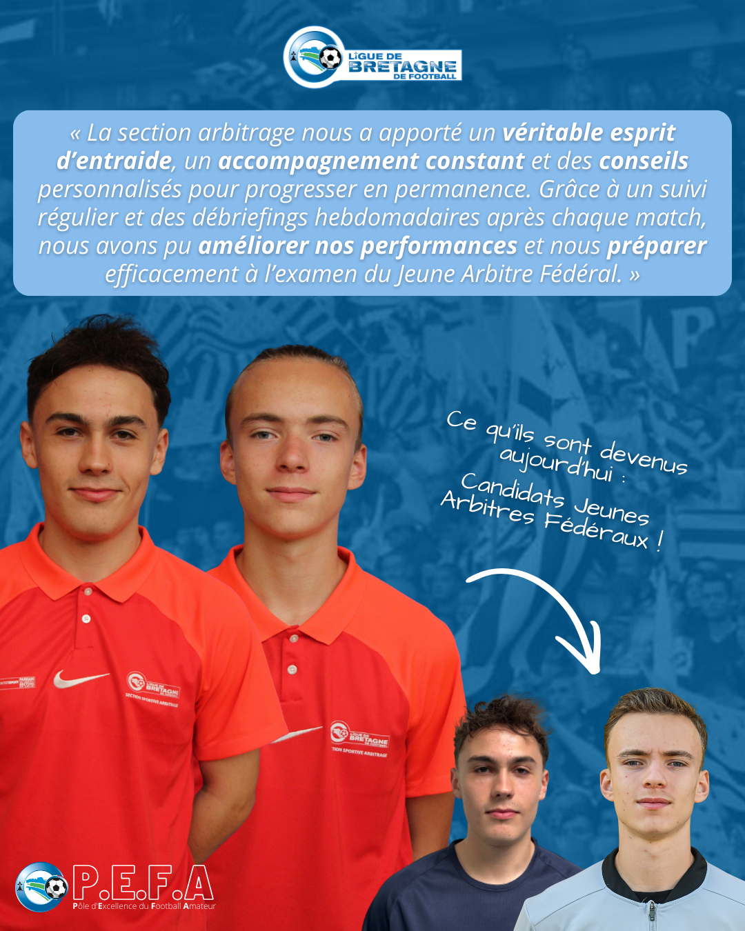 Tu es arbitre officiel et tu rentres en 𝟮𝗻𝗱𝗲 ou en 𝟭𝗲̀𝗿𝗲 à la rentrée 2026 ? Viens donner une nouvelle dimension à ta passion à la Section Sportive en Arbitrage au Pôle d’Excellence du Football Amateur (PEFA) du Lycée Gros Chêne à Pontivy !